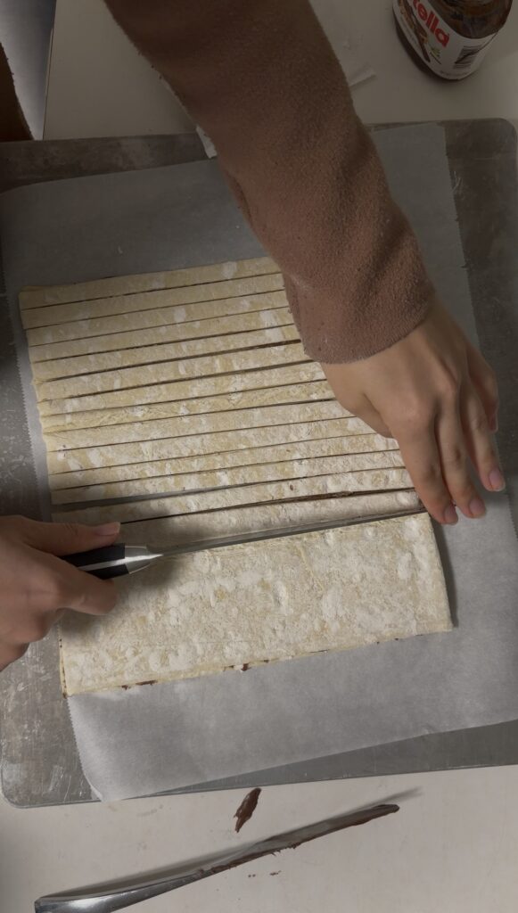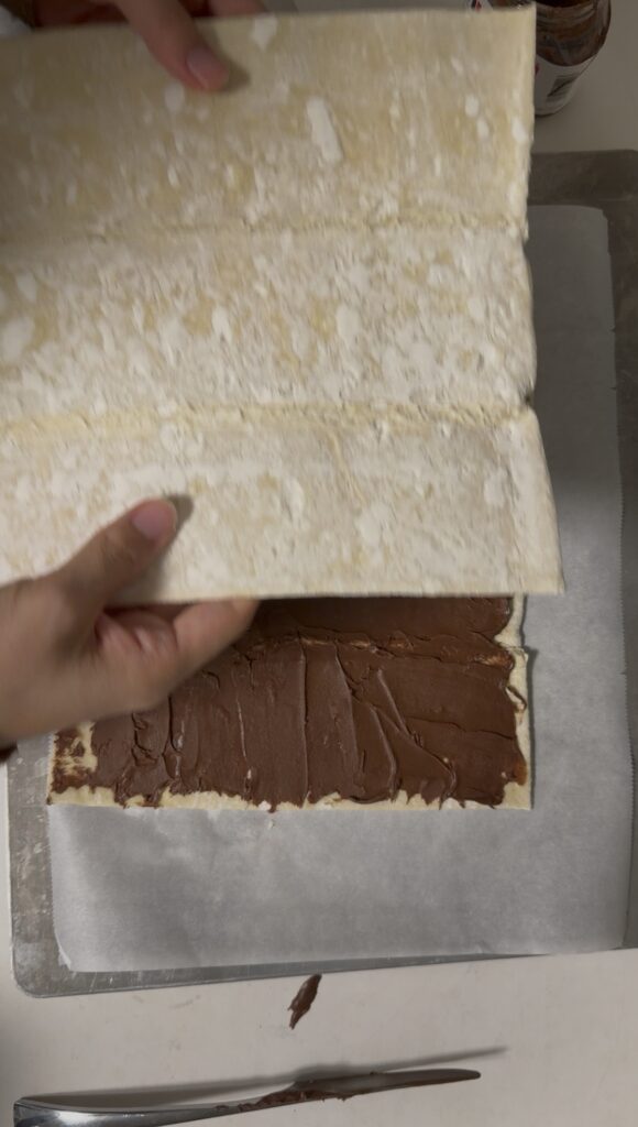 Place the second sheet on top to create a Nutella puff pastry “sandwich.”