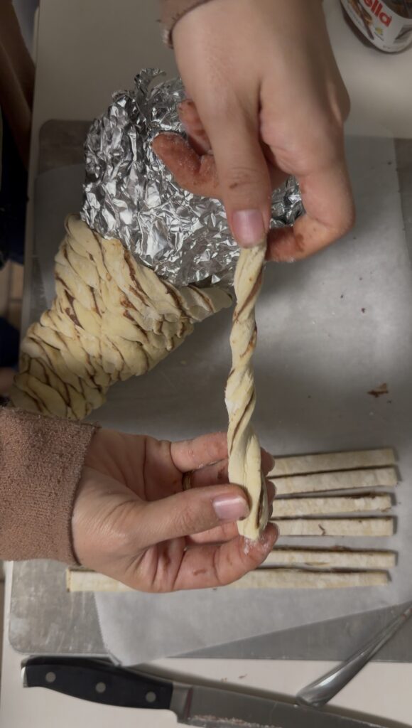 **Meta Description:** How to make a Nutella puff pastry cornucopia for fall dessert boards. Easy step-by-step instructions for shaping, twisting, baking, and filling.