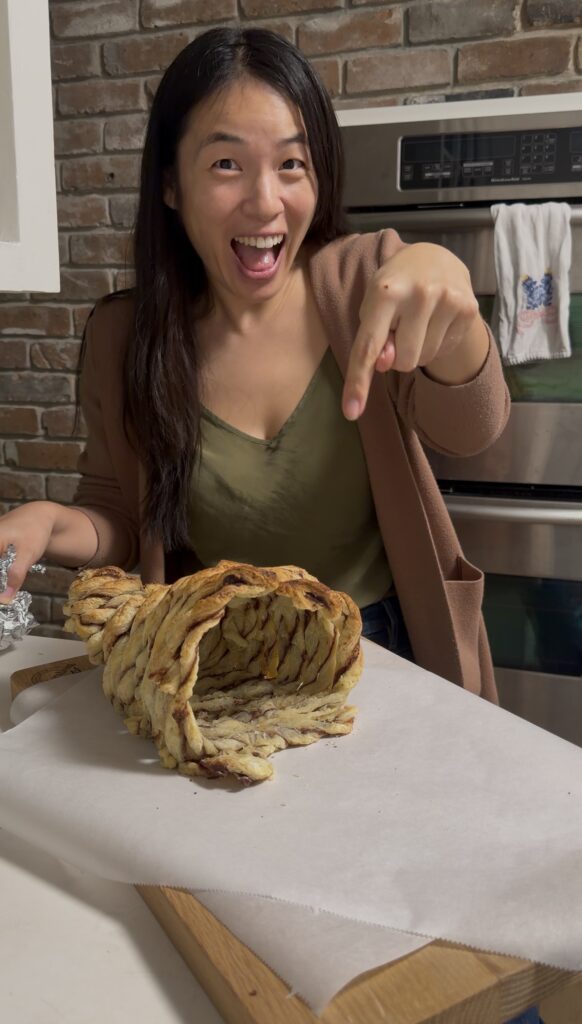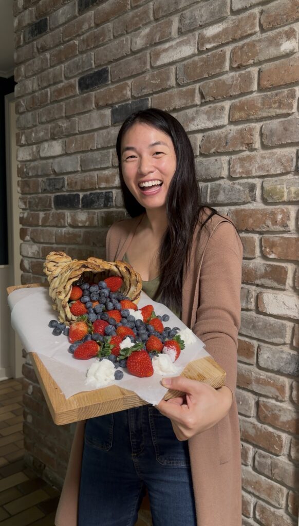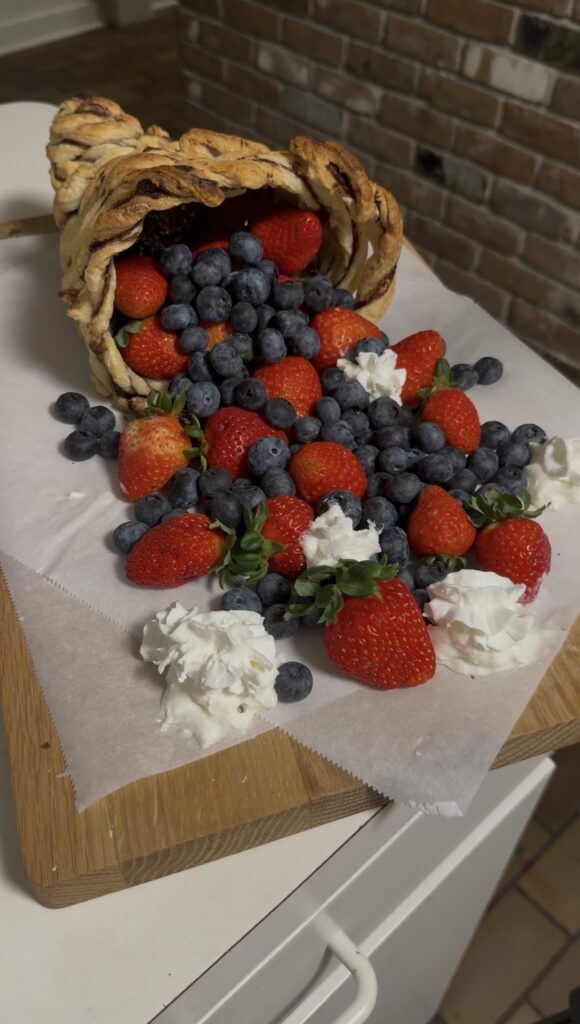 The Nutella puff pastry trend has been everywhere this year, so I made a Thanksgiving cornucopia version filled with berries and whipped cream. It’s simple, cute, and the perfect touch for a fall dessert board, especially if you want something impressive and festive without spending hours baking.