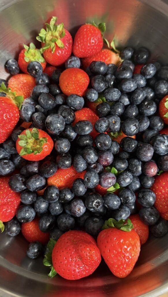 – Strawberries and blueberries, or whatever fruit you’d like to fill it with