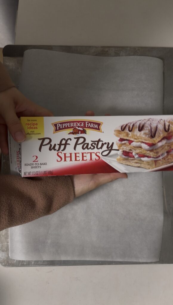 3. UNFOLD AND SLIGHTLY ROLL OUT THE PUFF PASTRY