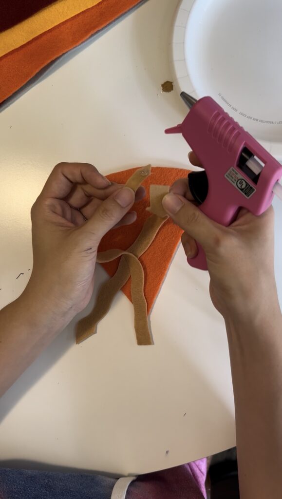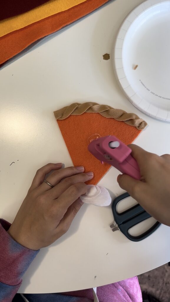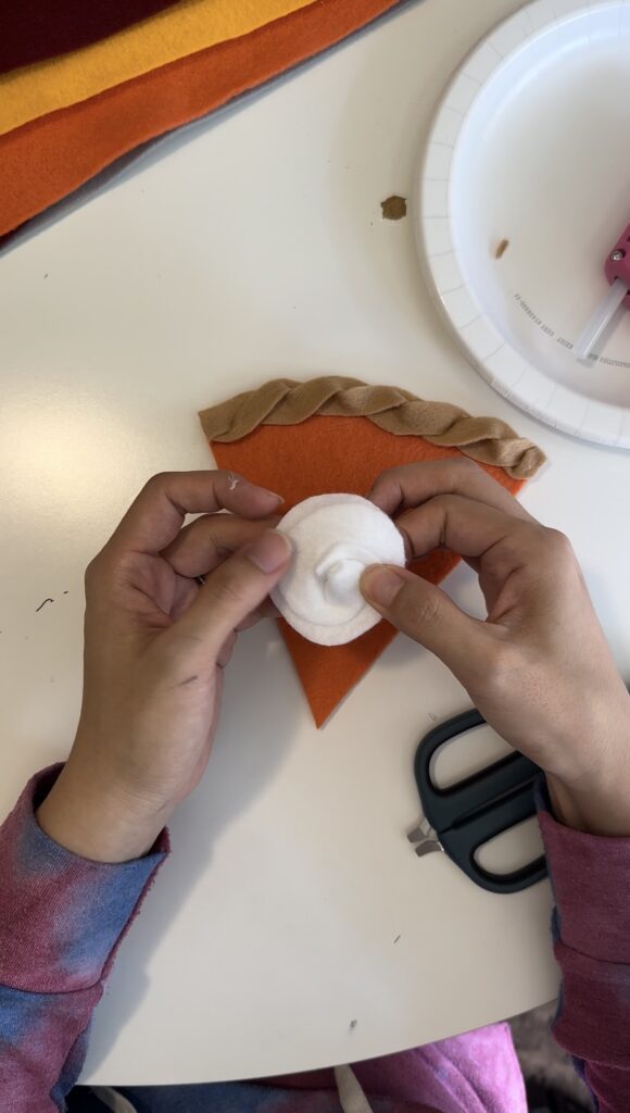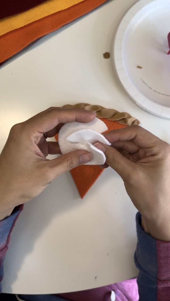 – Add a white felt whipped cream dollop in the center (same technique as pumpkin).