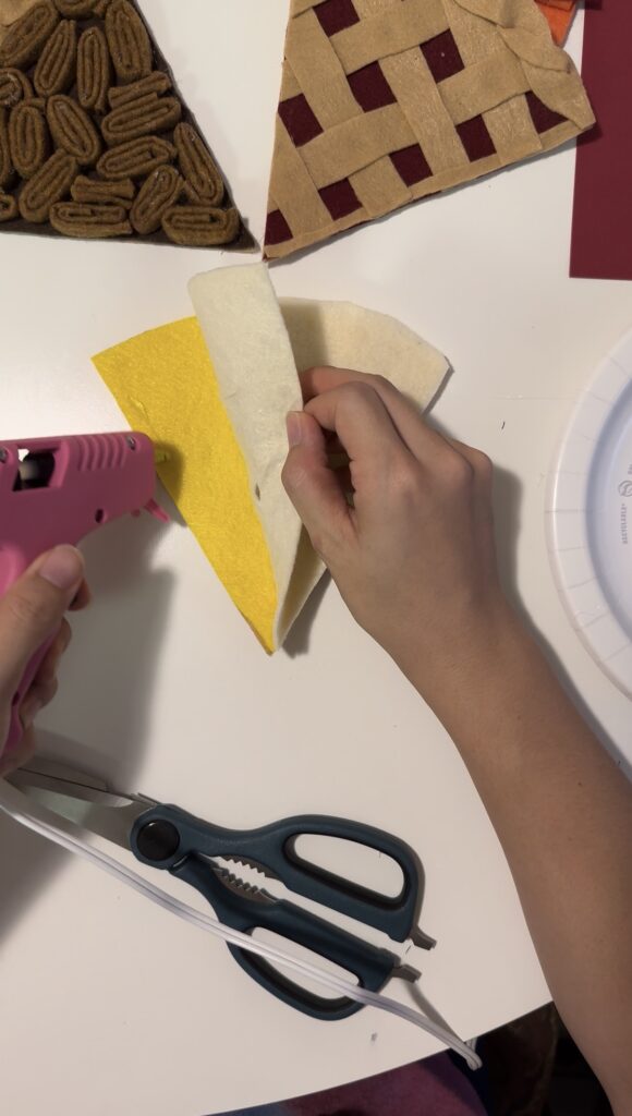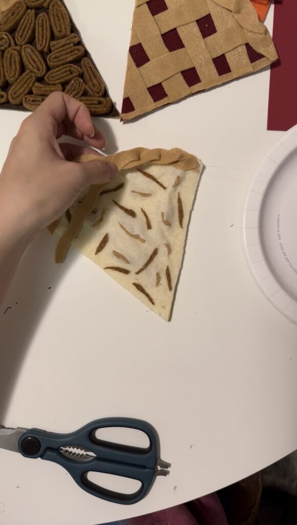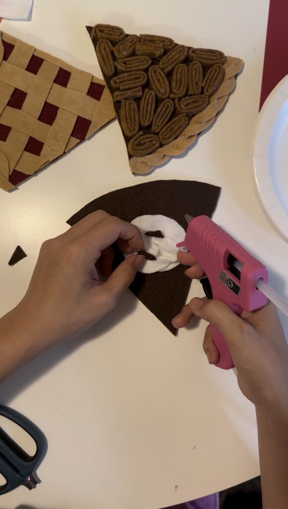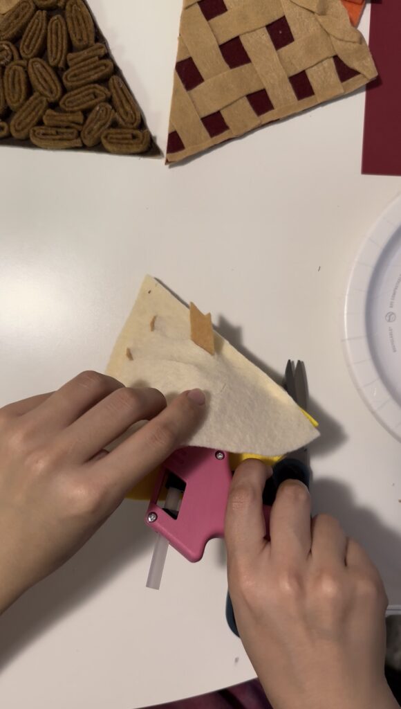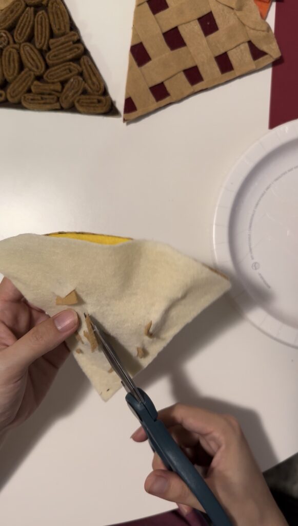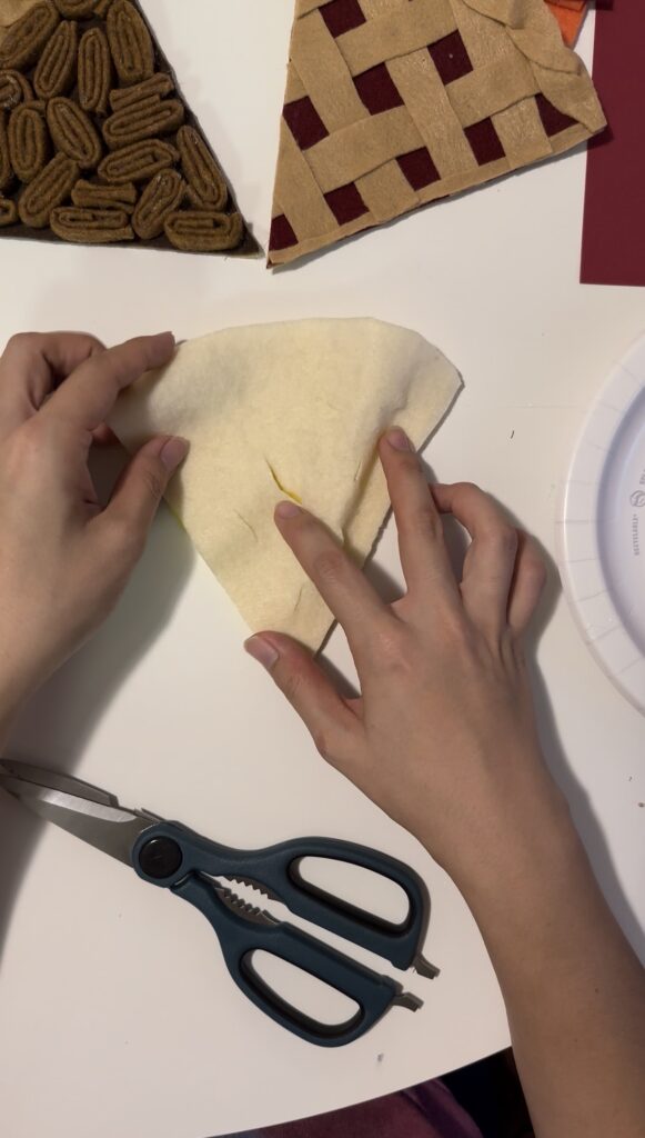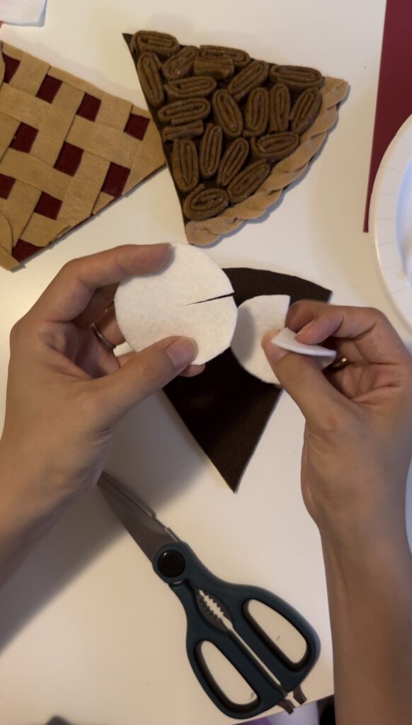 – For extra durability, cut **tiny slits** into the cream layer and **insert thicker felt shreds** before gluing. This helps the pie keep its shape in storage.