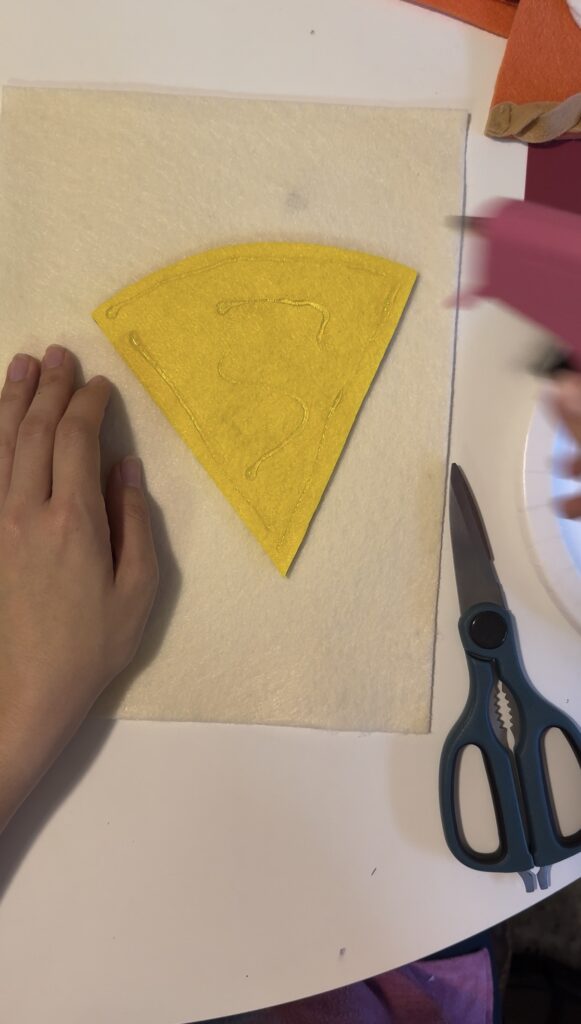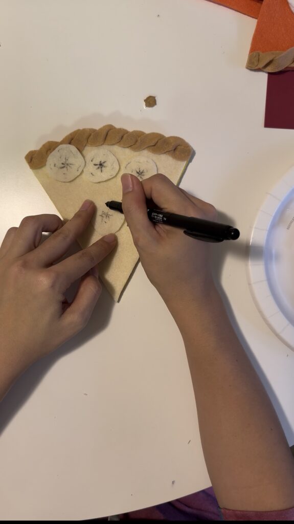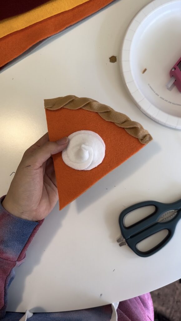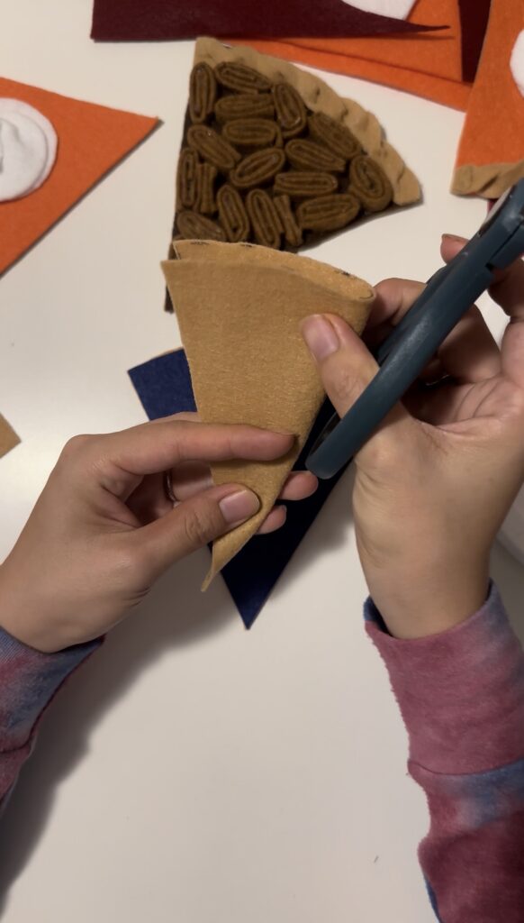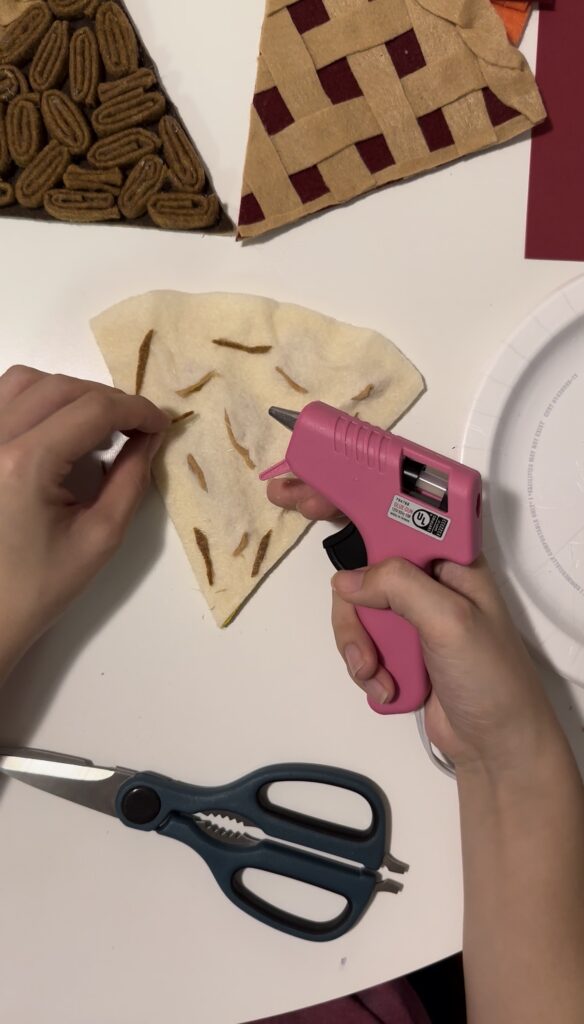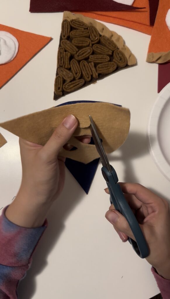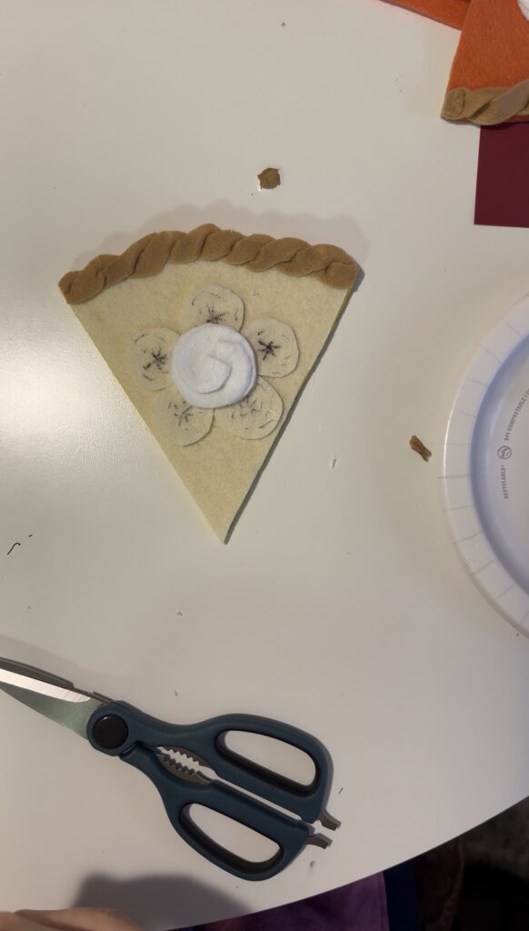 – For extra durability, cut **tiny slits** into the cream layer and **insert thicker felt shreds** before gluing. This helps the pie keep its shape in storage.