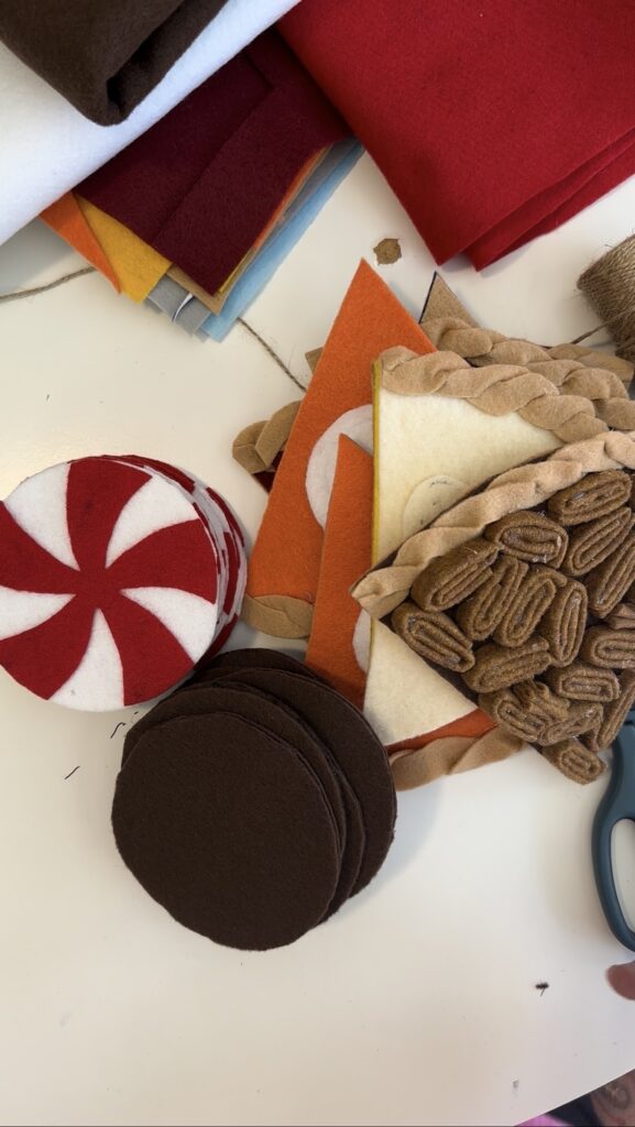 – Felt sheets for whatever pies you want, and red & white for peppermints